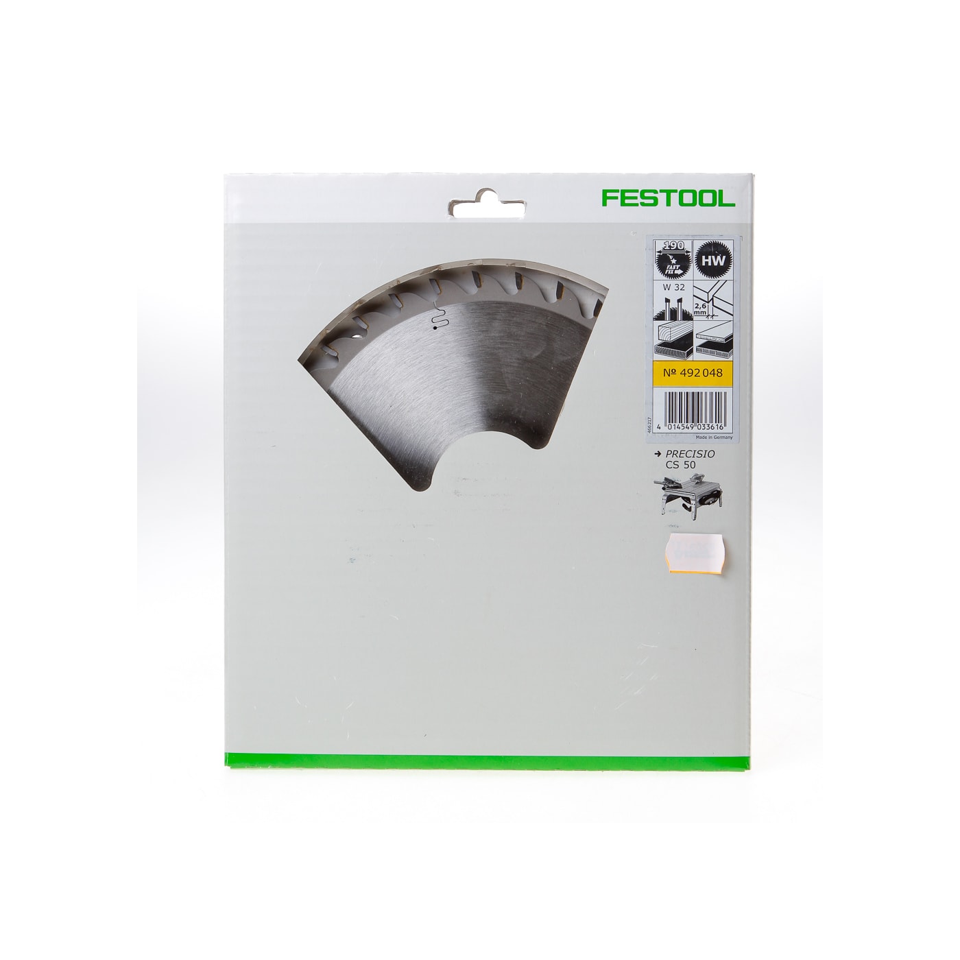 Zwaartepunten voor de toepassingen · Voor het bewerken van alle soorten hout en houtmateriaal en van bouwmateriaalplaten, gipsvezelplaten en zachte kunststof · Dankzij wisseltand en middelsterke spaanhoek is dit zaagblad geschikt voor zagen in lengte- en dwarsrichtingLeveringsomvangBlister-verpakkingPassend voor · voor CS 50