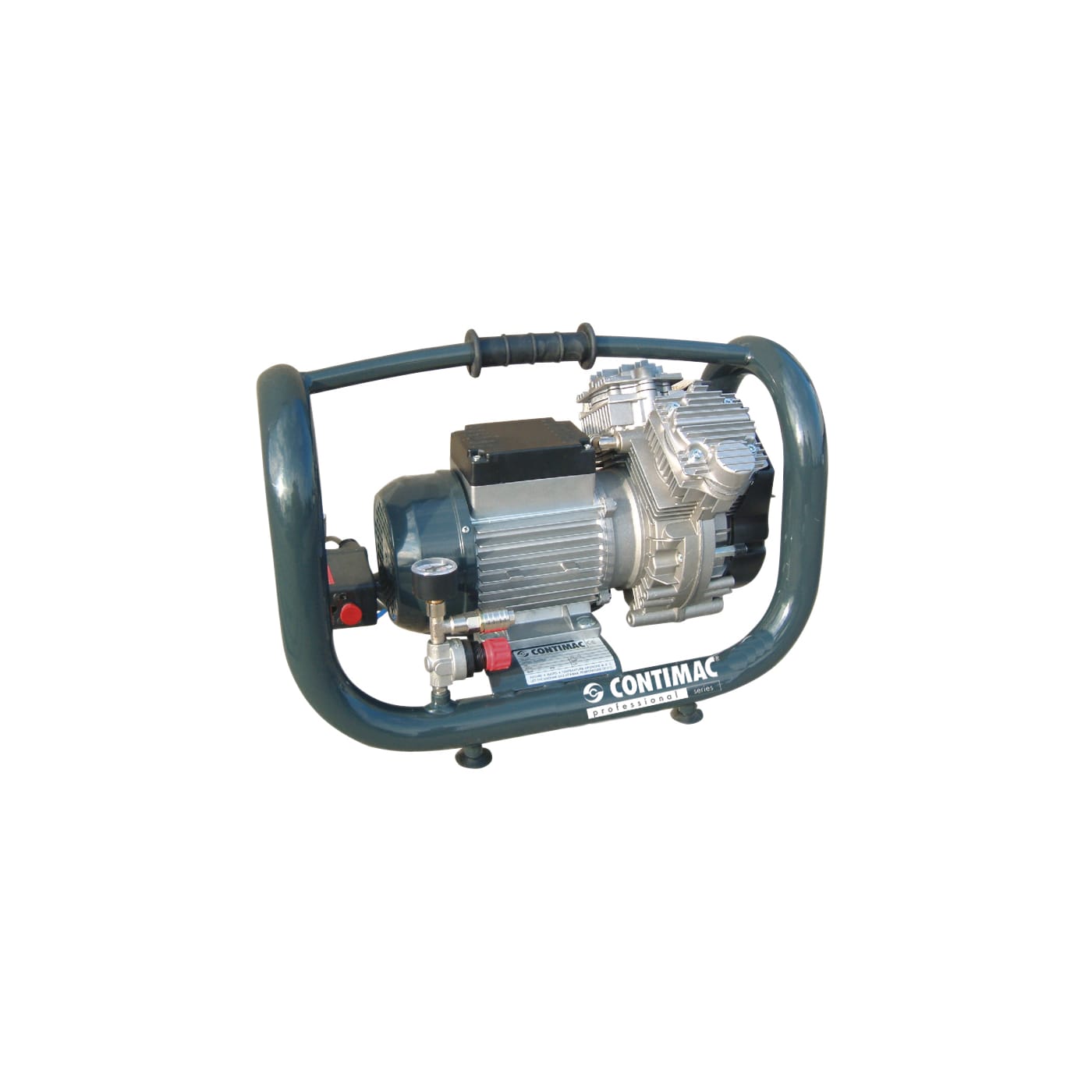 Traagdraaiende olievrije zuigercompressor met 2 cilinders in V-formatie. Zeer compacte en stille compressor van Contimac, perfect voor mobiel gebruik.