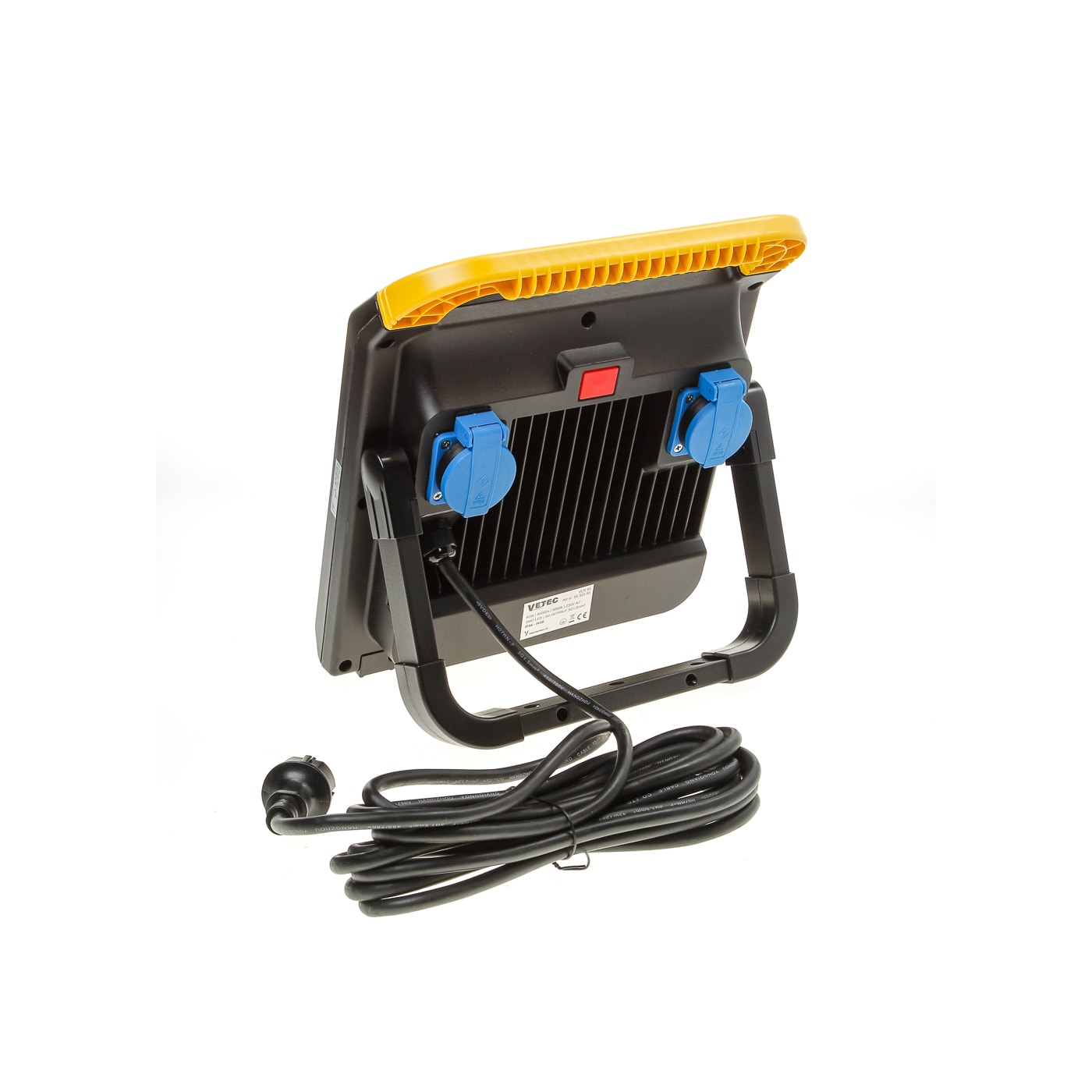 Vetec LED armatuur VLR80, met kunststof/ aluminium behuizing met slagvaste polycarbonaat antiverblindingsruit. Voorzien van geïntegreerde handgreep, 5-voudig verstelbare steunbeugel en 2 contactdozen.