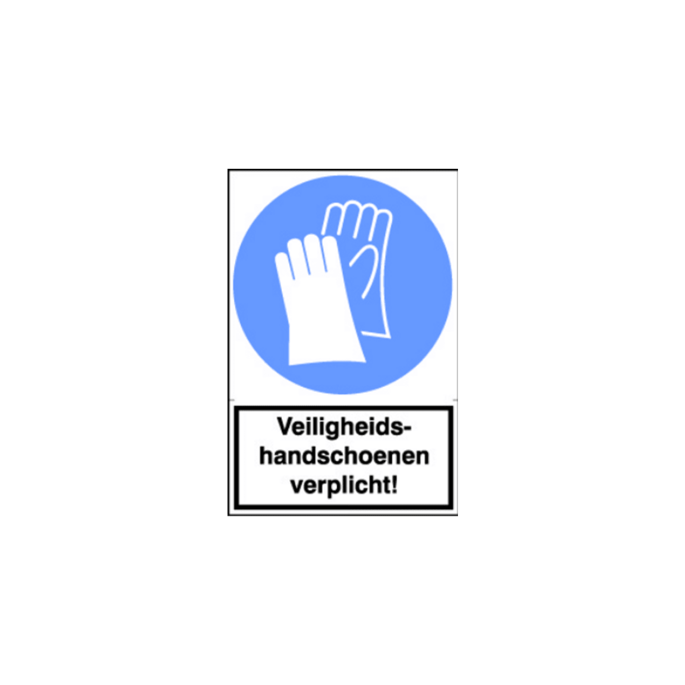 Veiligheidshandschoenen verplicht, vervaardigd uit hard pvc (0,7 mm), voorzien van een zeer krachtige acryl kleeflaag en bedrukt met UV-bestendige inkt, waardoor ze bij gebruik buiten niet verkleuren. Volgens de Europese richtlijn 92/58/EEG.
