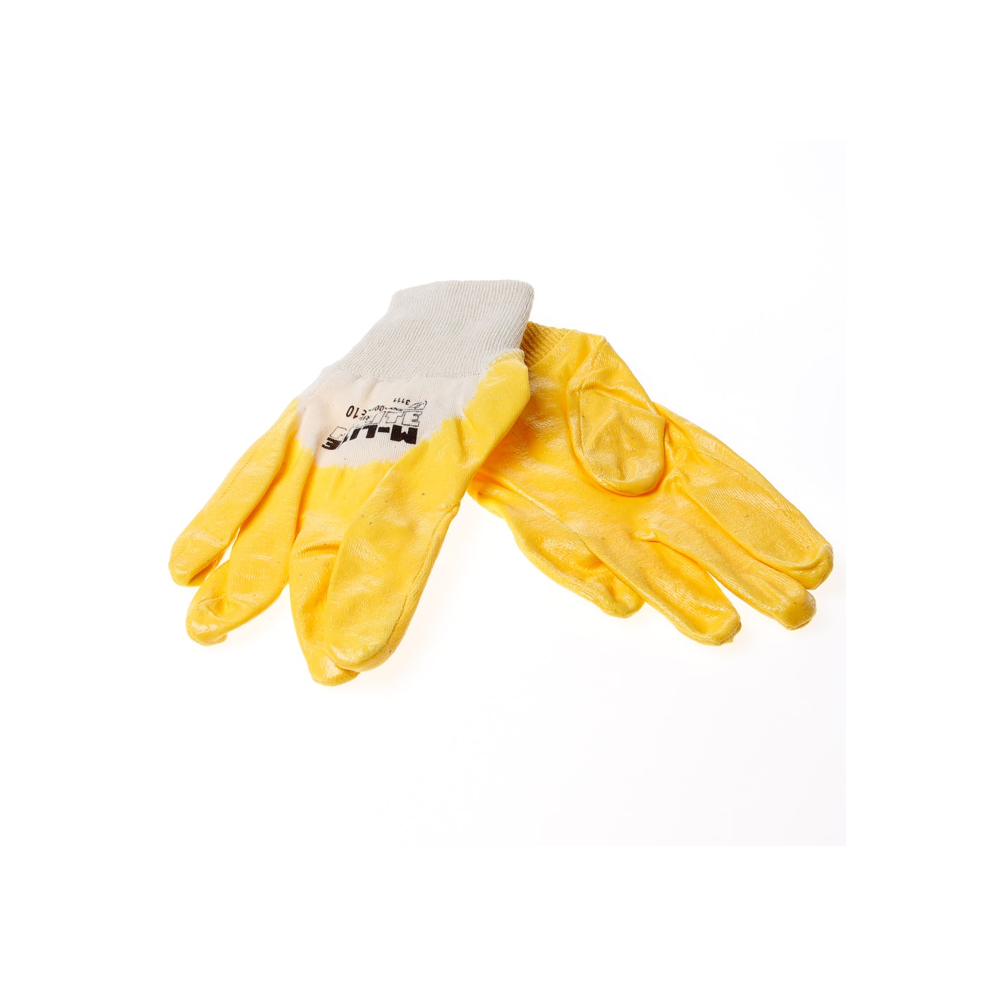 Nitril (NBR)-coating op de handpalm en vingersKatoenen interlock drager en tricot manchetVentilerende open rugzijdeDe ¾ coating loopt door tot de knokkels voor extra beschermingUitstekende droge gripGoede bescherming tegen olieën en vettenKleur: geel/wit