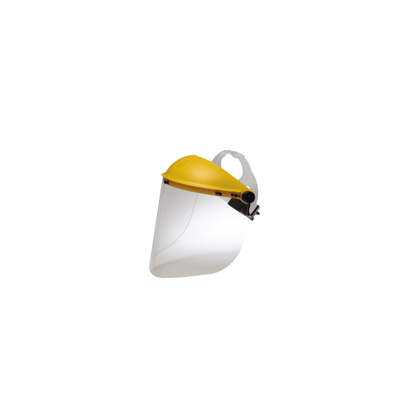 Lichtgewicht en zeer comfortabel gelaatscherm, 450 x 200 mm, met individueel verstelbare hoofdband en voorhoofdbescherming.• Goede bescherming tegen impact (niveau B, gemiddelde energie) deeltjes en vloeistoffen (druppels en spatten) • Met verstelbare hoofdband • Ruit in polycarbonaat • Inzetbaar tot 130°C MATERIAAL : PC CONFORM : EN 170 GESCHIKT VOOR : chemische nijverheid, algemene industriële toepassingen en bouwnijverheid