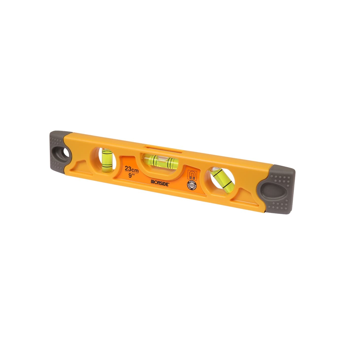 Torpedo model, kunststof, schok- en stootbestendig, 3 libellen in plexiglas blokjes, met magnetische strip. Meetnauwkeurigheid 0,5 mm/m.