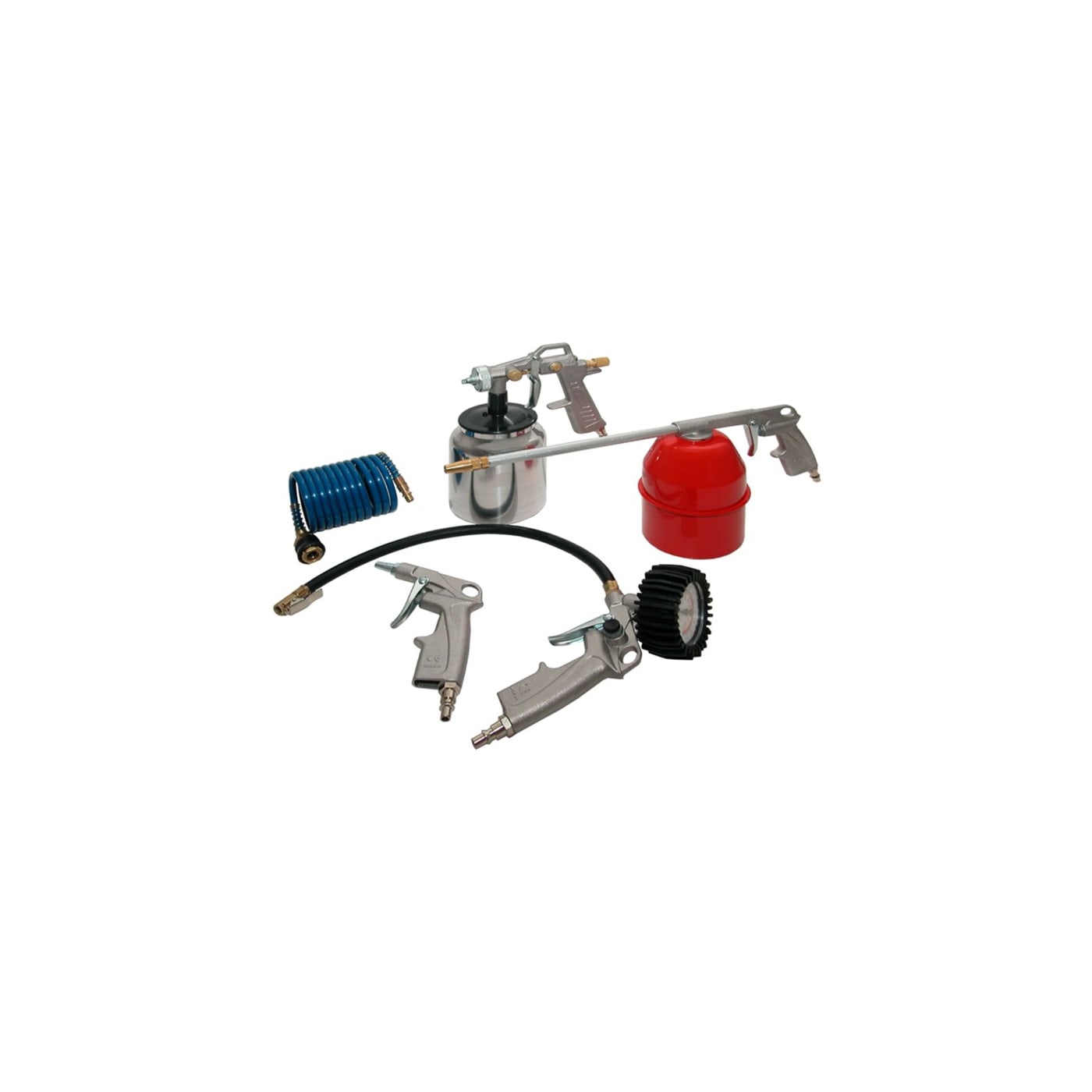 5-delige set bestaande uit verfspuit, bandenpomp, blaaspistool, vloeistofspuit, spiraalslang 5 m Ø 8x6 mm, met koppelingen.