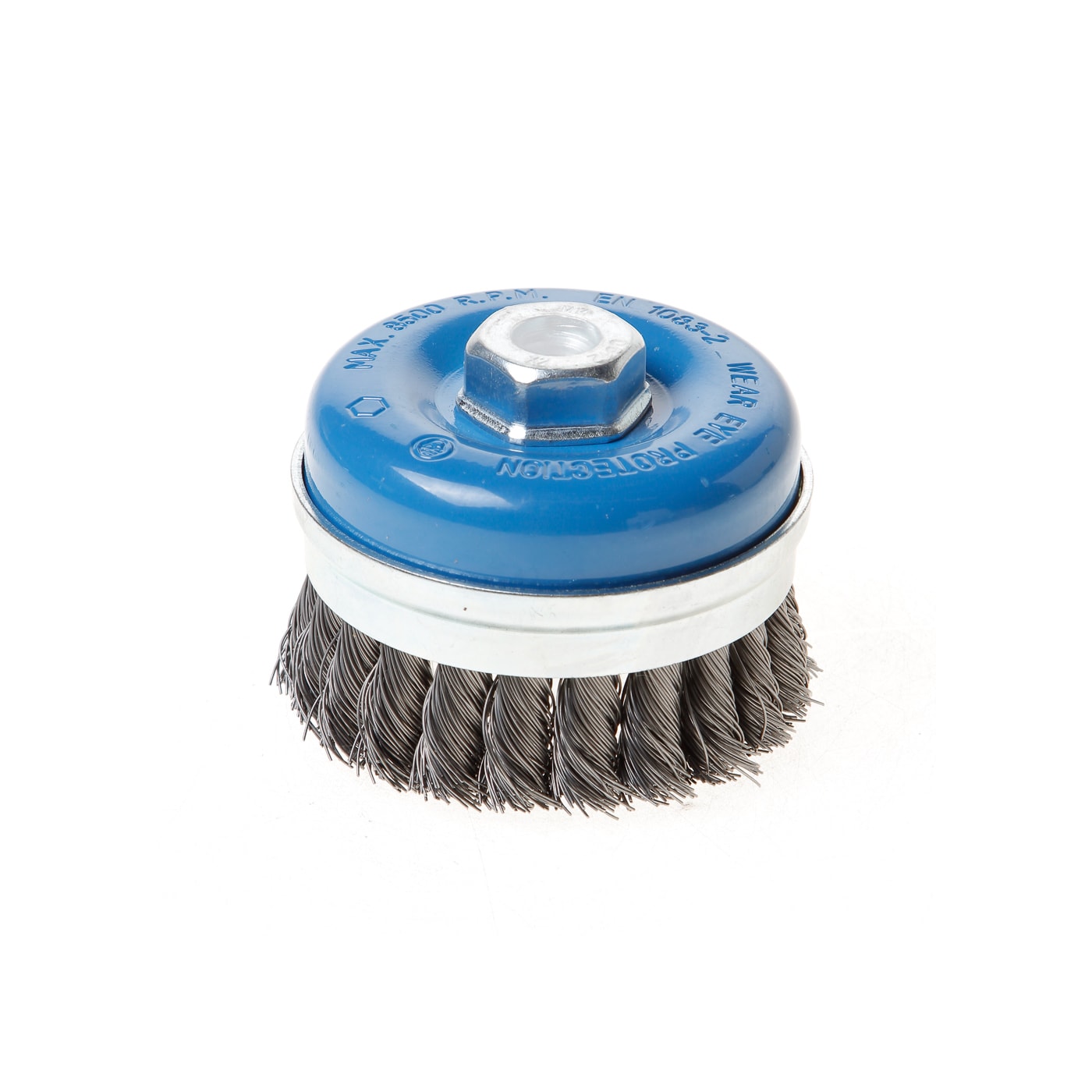 Komstaalborstel – gevlochten draadGeschikt voor zware reinigingswerkzaamheden op middelgrote tot grote metalen vlakken, zoals verwijderen van sterke roest of tectyl, afnemen van lak of verf.Passend bij haakse slijpmachines met M 10 of M 14 schroefdraad evenals GGS 6 S Professional