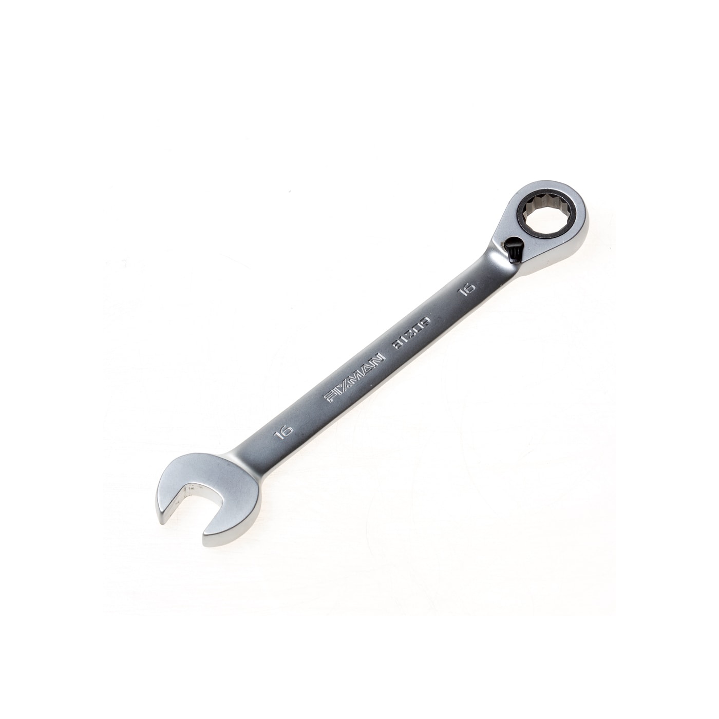 Ring- en steeksleutel met omstelbare ratelfunctie. Bek- en ringmaat 16mm.