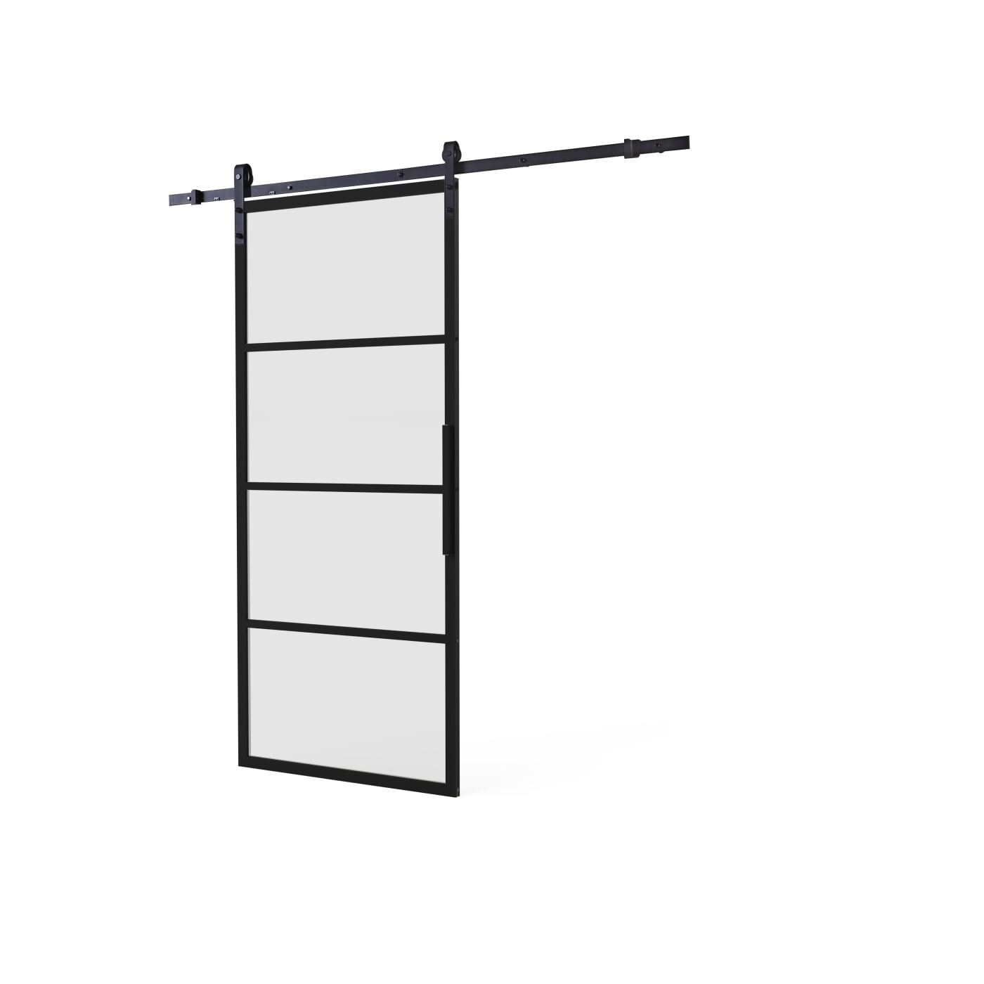 DIY-schuifdeur Cubo zwart inclusief mat glas, afmeting deur 2350x980x28mm + zwart ophangsysteem type Basic