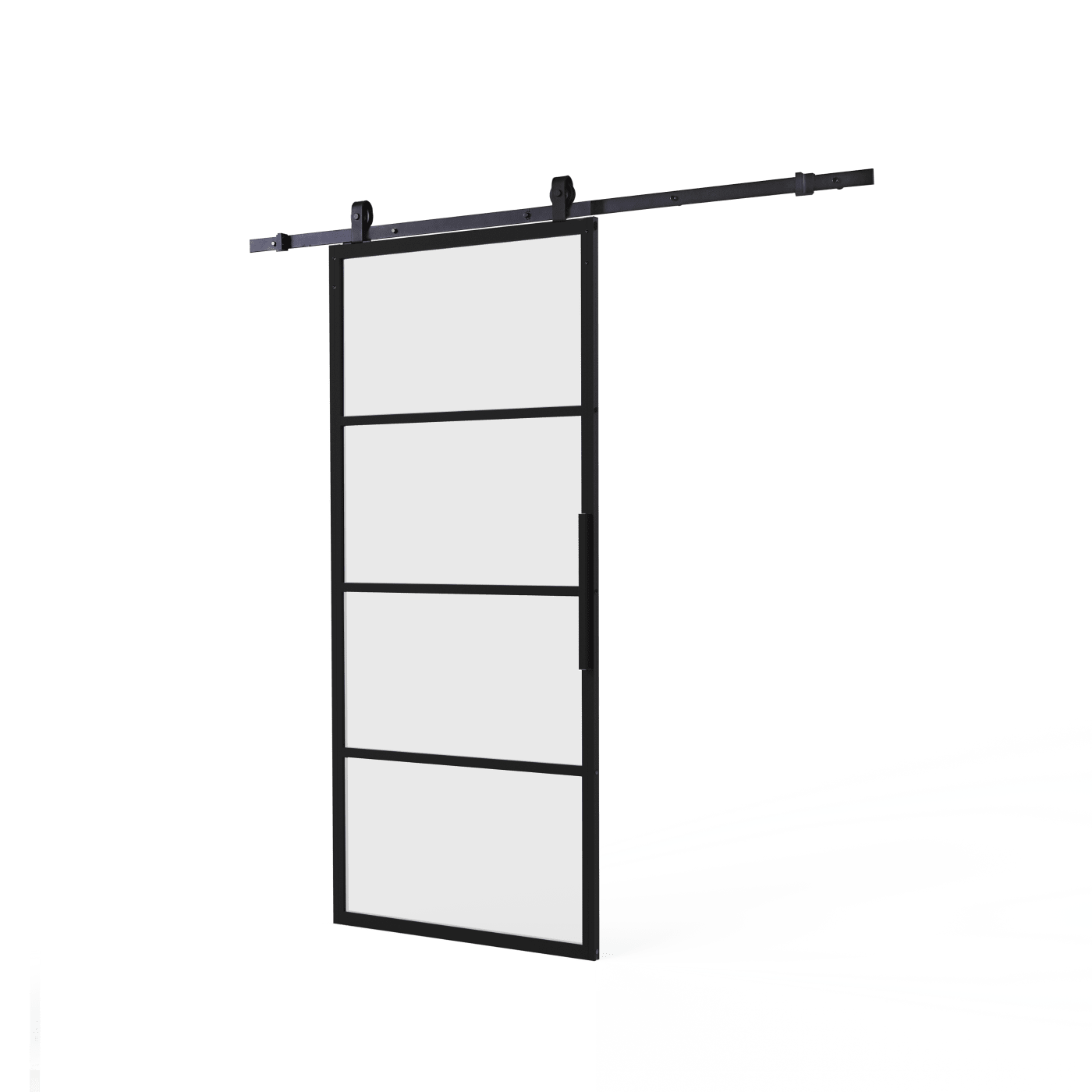 De DIY-schuifdeur Cubo is een combinatie van een stijlvolle zwarte deur met een strak schuifdeursysteem. De deur bestaat uit een aluminium zwart profiel en vier glaspanelen, die u eenvoudig in elkaar zet. De schuifdeur is 235 cm hoog, 98 cm breed en heeft een dikte van 2,8 cm. Het geharde matte glas is 6 mm dik. Deze complete DIY set wordt geleverd inclusief deurgreep en schuifdeursysteem Basic Top. Dit stalen ophangsysteem met zwarte poedercoating bestaat uit twee rails van 100 cm. Daarnaast bestaat deze set uit twee rechte hangrollen met een lengte van 13 cm, geschikt voor montage bovenop de deur. Om voor een goede geleiding van de schuifdeur te zorgen, worden er deurstoppers, afstandhouders en een vloergeleider meegeleverd. Deze complete set wordt aangeboden inclusief bevestigingsmateriaal en een uitgebreide montagehandleiding. 10 jaar functionaliteisgarantie.Verpakkingsinhoud:Zeven zwarte profielenVier matte glaspanelenZwarte nylon stripsDeurgreepTwee stalen railsTwee hangrollenTwee stalen deurstoppersAfstandhouders voor op de deurSchuifdeur vloergeleiderBevestigingsmateriaal voor montage