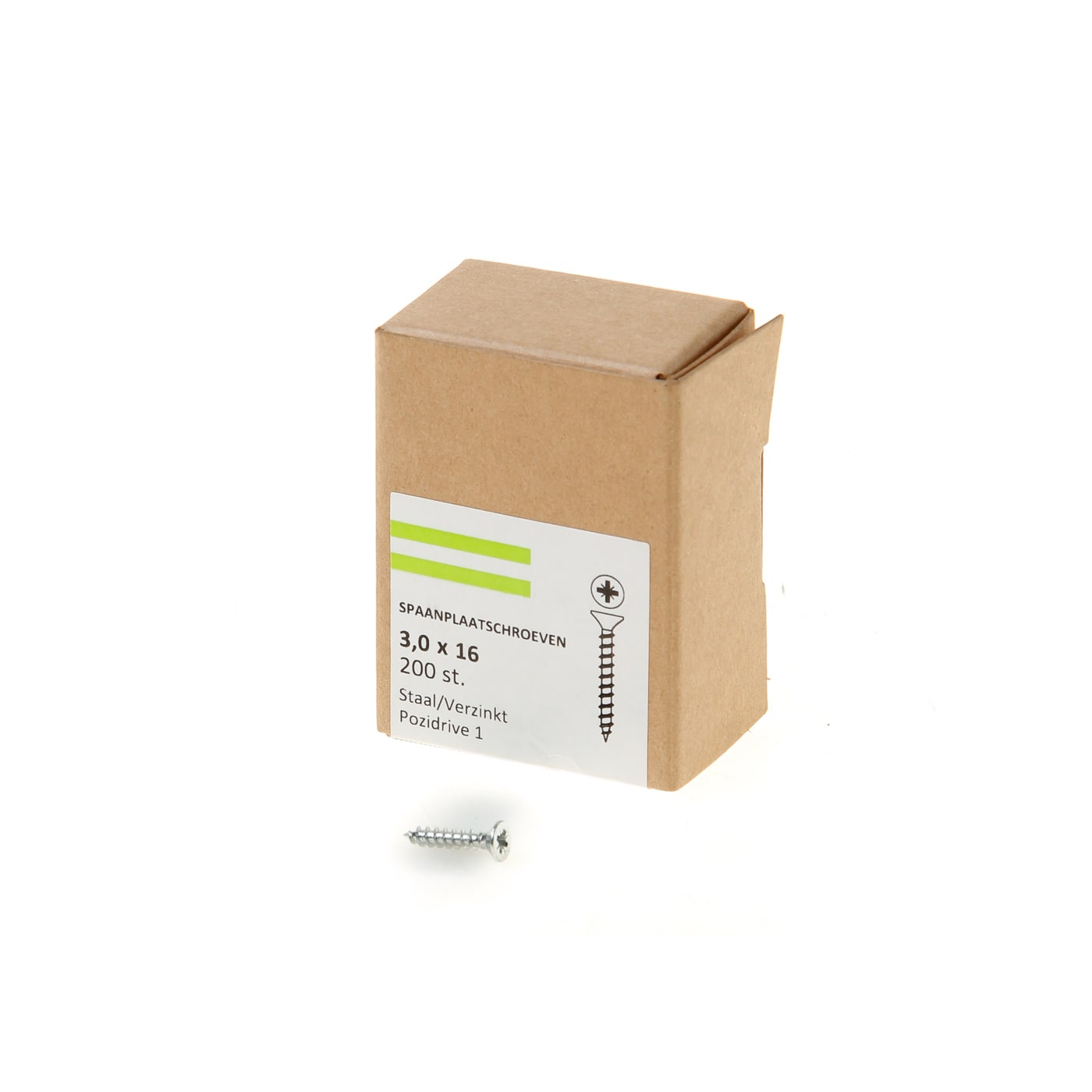 Spaanplaatschroef verzinkt platkop pz-1 3.0X16 voldraad (200)