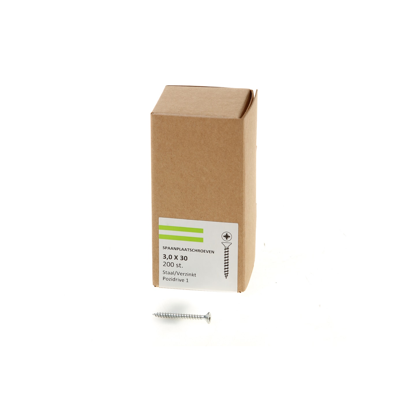 Spaanplaatschroef verzinkt platkop pz-1 3.0X30 voldraad (200)
