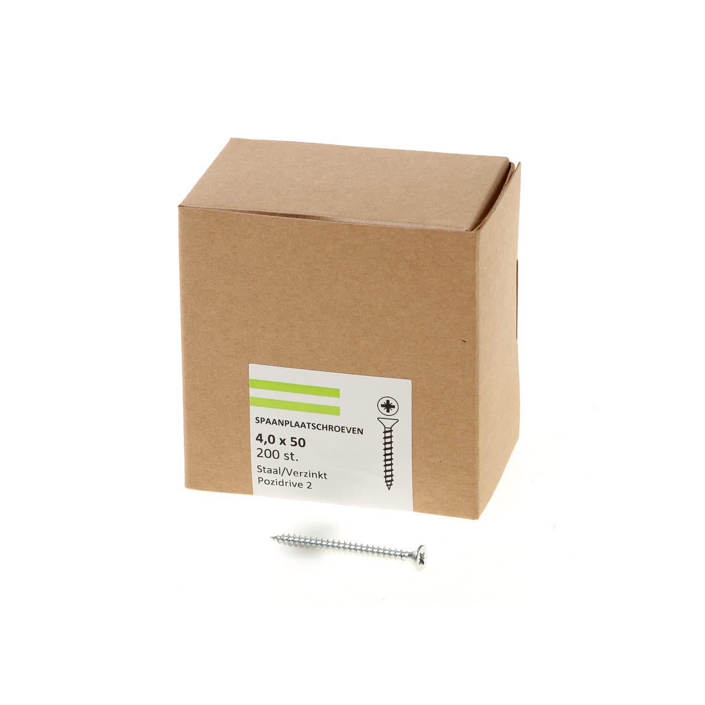 De Hoenderdaal spaanplaatschroef staal verzinkt met platverzonkenkop en Pozidrive is een schroef met een scherpe, diepe draad en dunne schacht, en is gemaakt van gehard staal. De spaanplaatschroef is de meest gebruikte schroef voor alle houtsoorten en plaatmateriaal. De Hoenderdaal spaanplaatschroeven zijn van professionele kwaliteit, een speciale wax-laag zorgt ervoor dat ze gemakkelijk te verwerken zijn in verschillende bouwstoffen. De schroeven zijn sterk en tevens buigzaam waardoor de kans op afbreken minimaal is. De extra scherpe punt zorgt er tevens voor dat de schroef snel start. Hoenderdaal spaanplaatschroeven zijn verpakt in een neutrale kartonverpakking en zijn verkrijgbaar met verschillende kopvormen: platverzonkenkop, cilinderkop en lenskop en verkrijgbaar met Pozi-drive of TX-aandrijving.