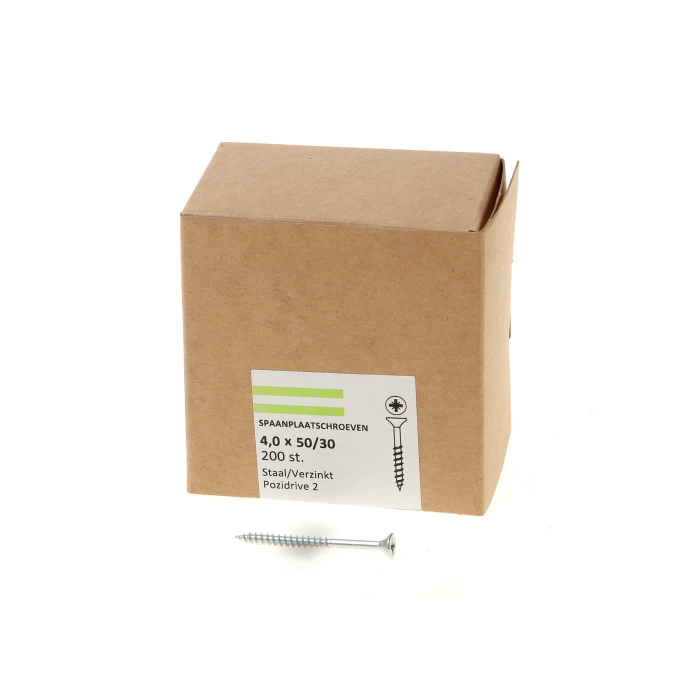 Spaanplaatschroef verzinkt platkop pz-2 4.0X50/30 deeldraad (200)