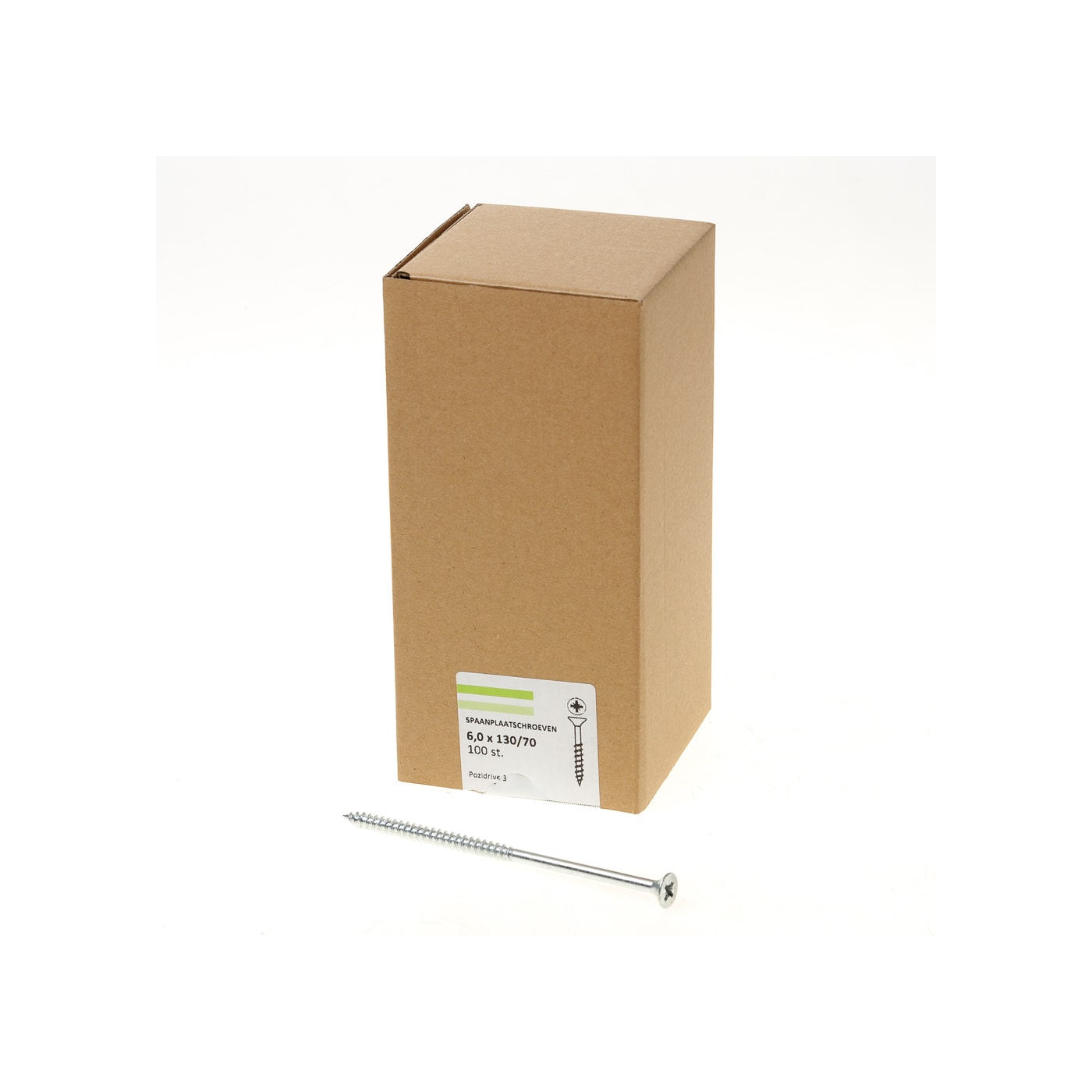 Spaanplaatschroef verzinkt platkop pz-3 6.0X130/70 deeldraad (100)