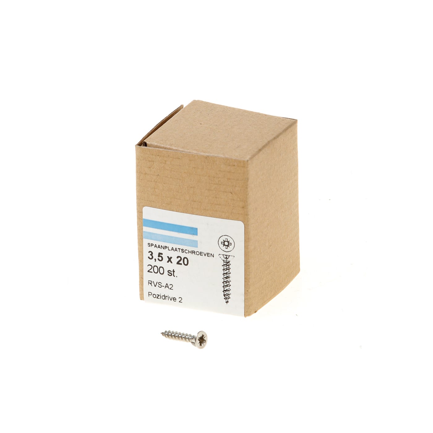 Spaanplaatschroef rvs-A2 platkop pz-2 3.5X20 voldraad (200)