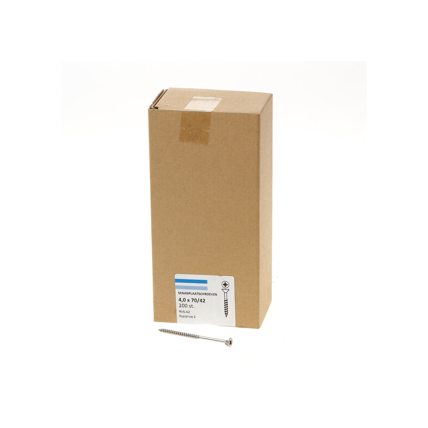 Spaanplaatschroef rvs-A2 platkop pz-2 4.0X70/42 deeldraad (200)