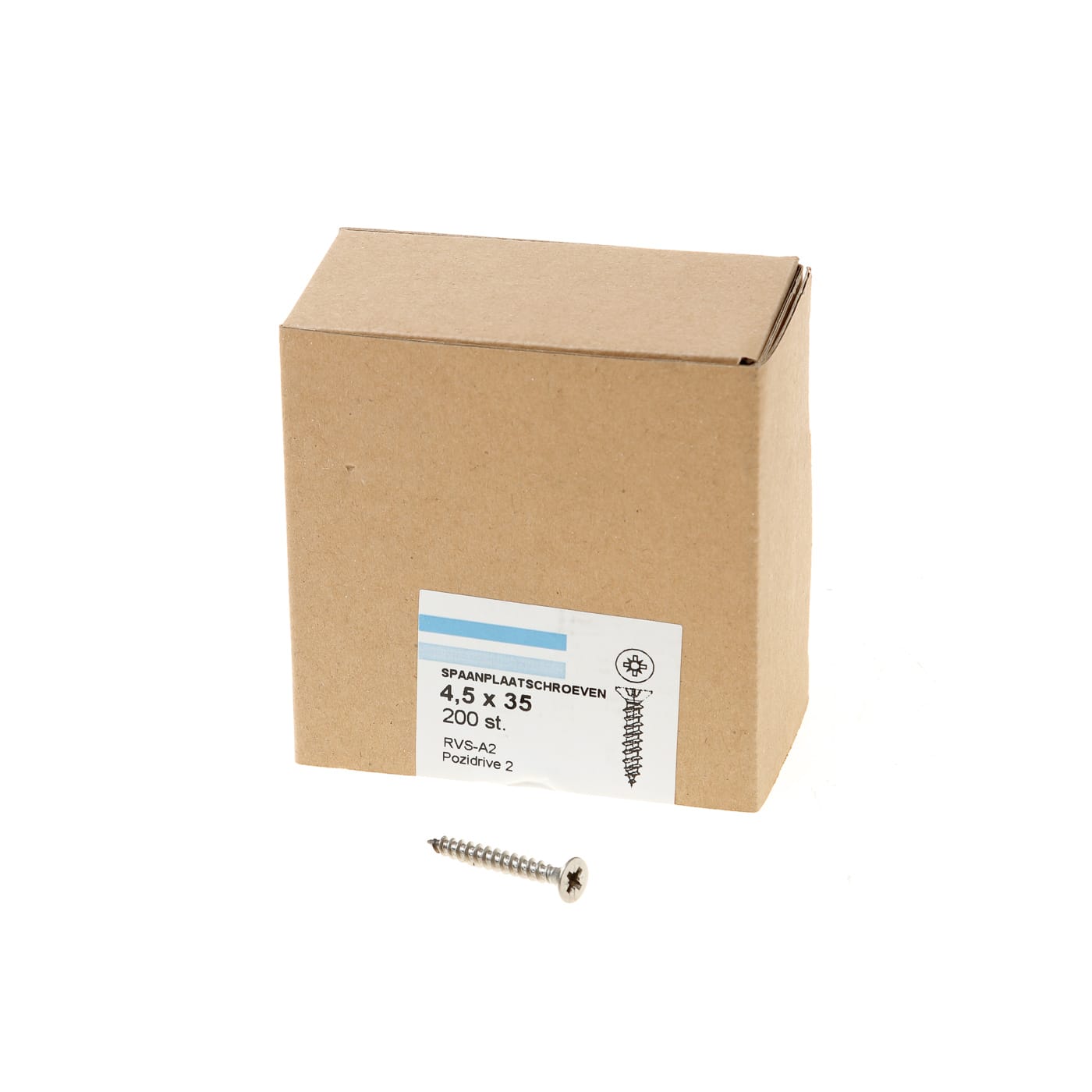 Spaanplaatschroef rvs-A2 platkop pz-2 4.5X35 voldraad (200)
