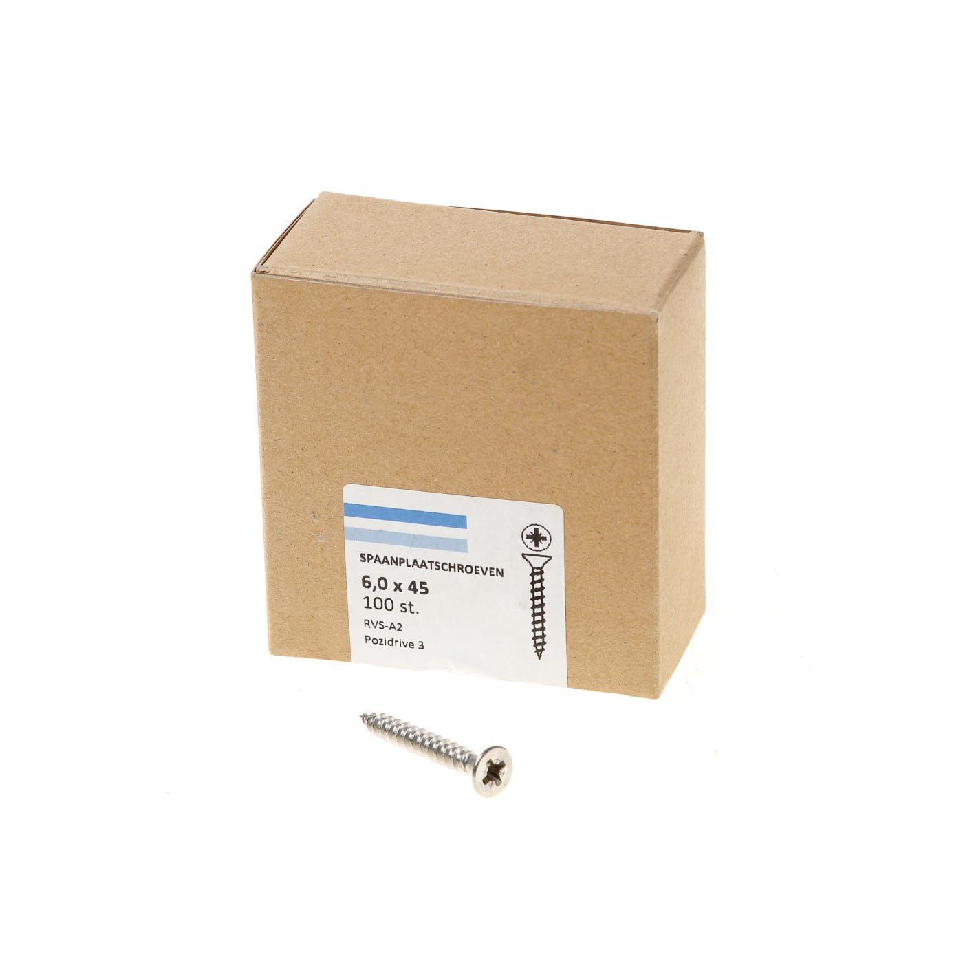 Spaanplaatschroef rvs-A2 platkop pz-3 6.0X45 voldraad (100)