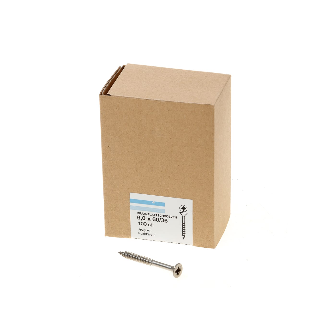 Spaanplaatschroef rvs-A2 platkop pz-3 6.0X60/35 deeldraad (100)