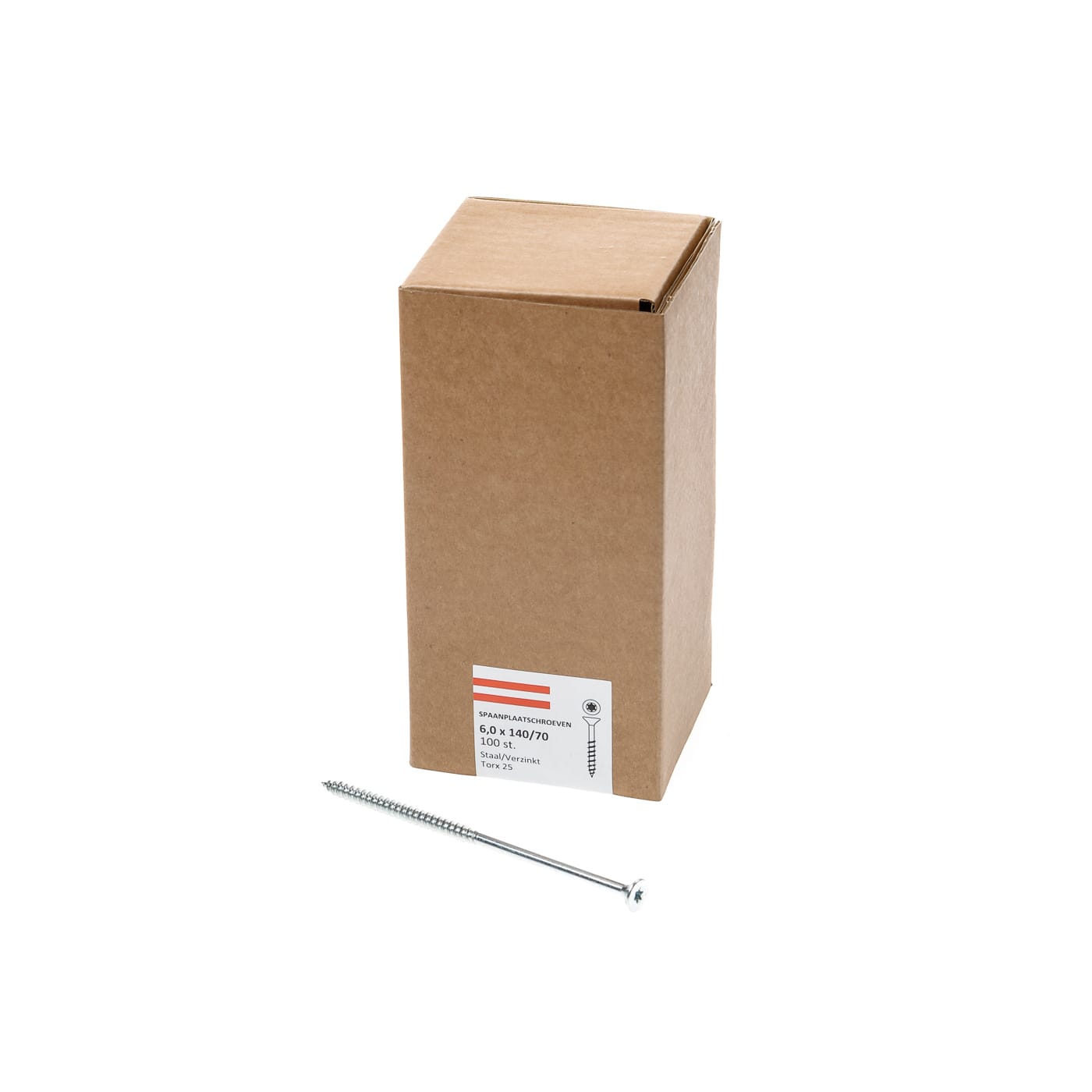 Spaanplaatschroef verzinkt platkop tx-25 6.0X140/70 deeldraad (100)