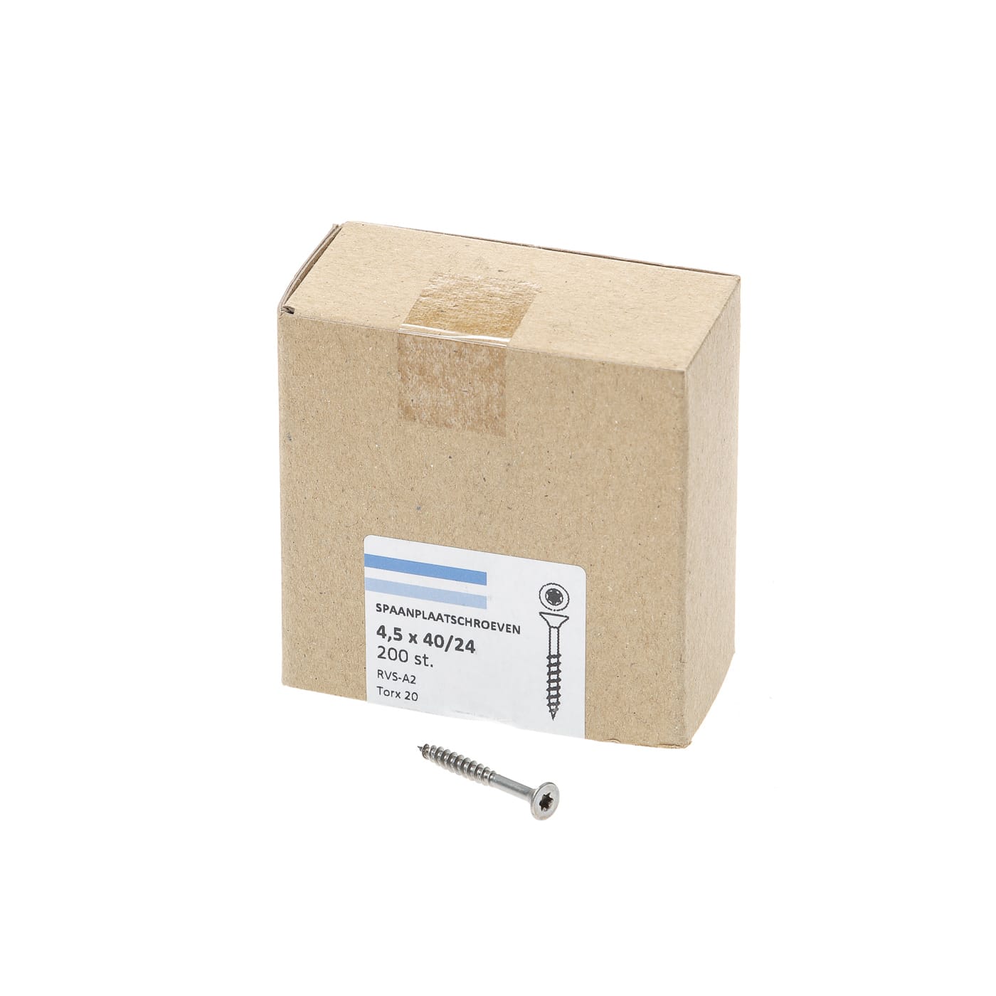 Spaanplaatschroef rvs-A2 platkop tx-20 4.5X40/24 deeldraad (200)