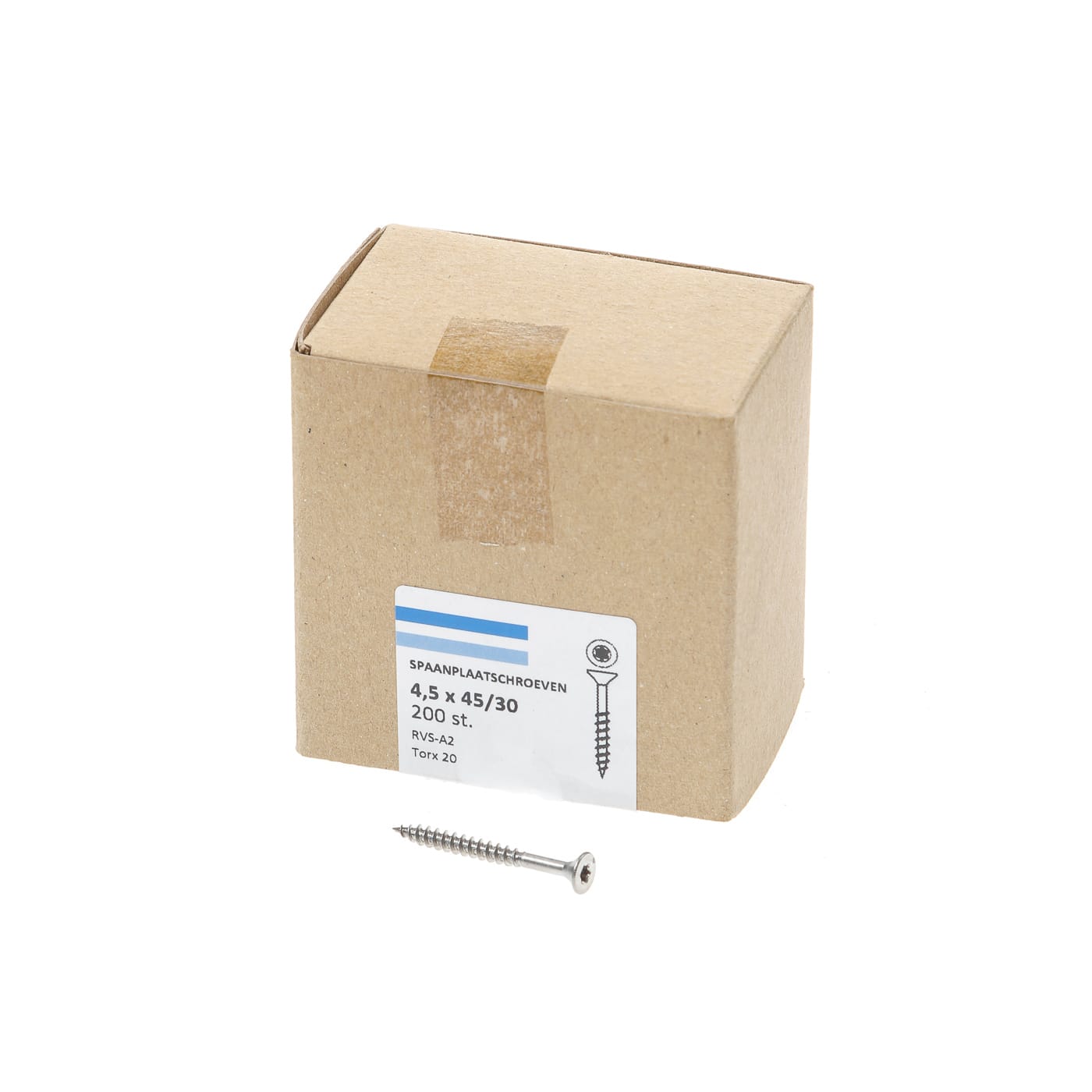 Spaanplaatschroef rvs-A2 platkop tx-20 4.5X45/30 deeldraad (200)
