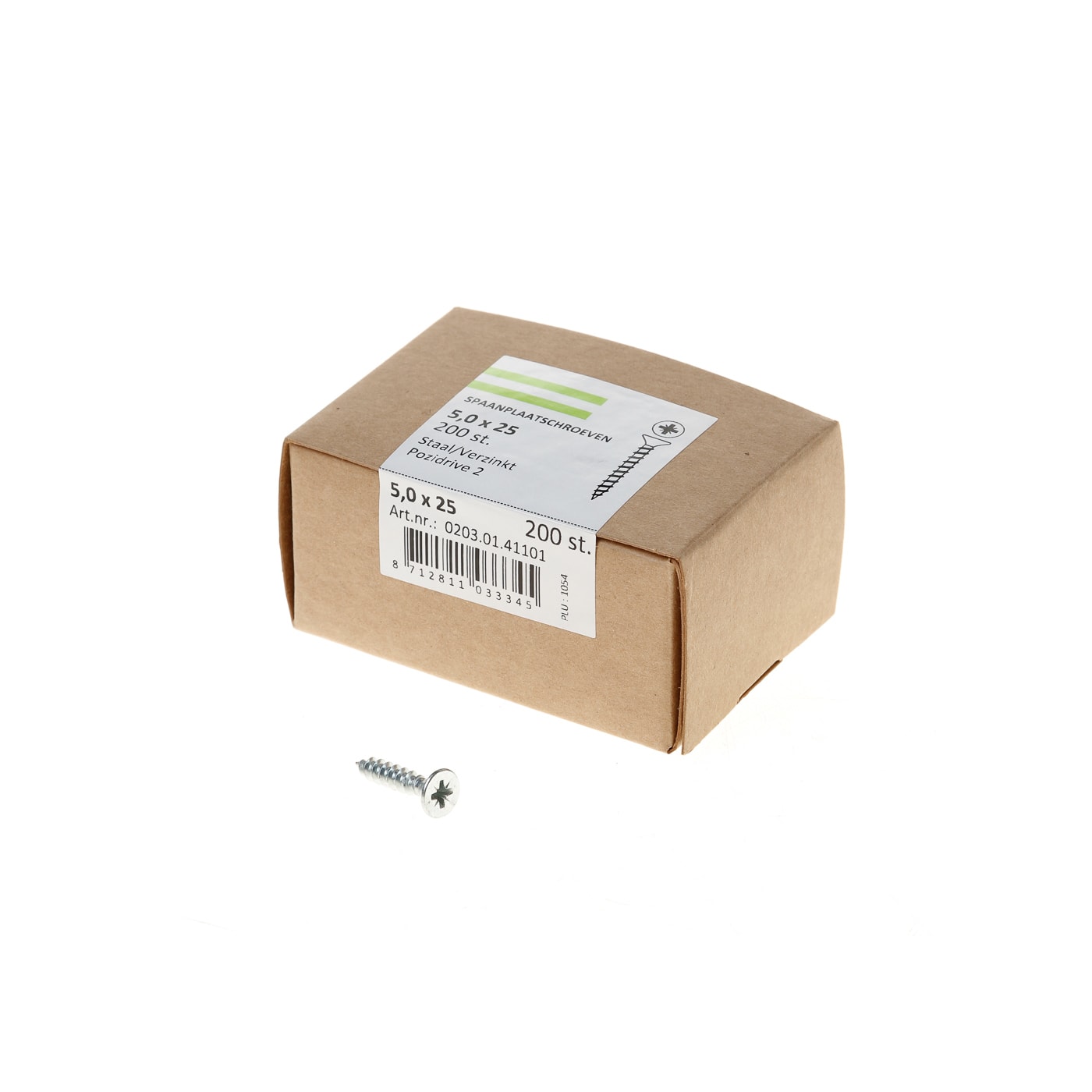 Spaanplaatschroef verzinkt platkop pz-2 5.0X25 voldraad (200)